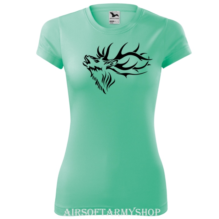 Fantasy dámske tričko s motívom jeleňa je ideálnou voľbou pre aktívne ženy, ktoré preferujú kvalitné poľovnícke oblečenie do prírody.